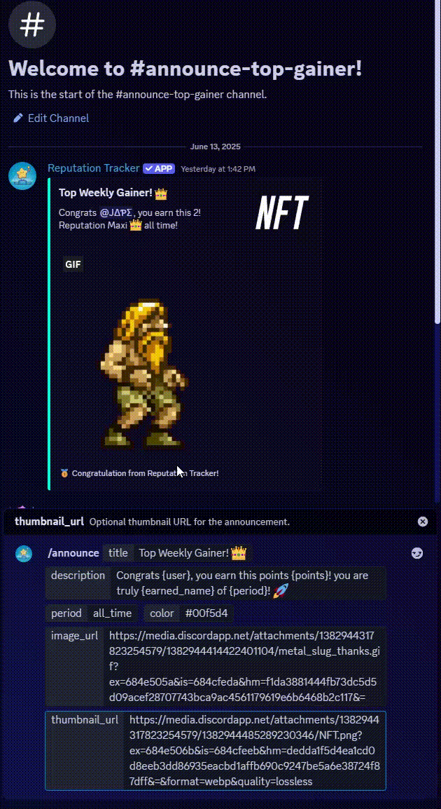 Welcome to ReputationBot! the advanced Discord community points & reputation system for communities, creators, and teams.Features at a Glance- Track points with upvotes, downvotes, or custom triggers.